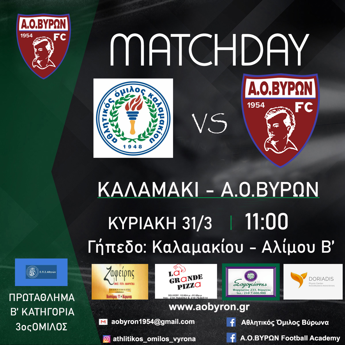 ΕΠΟΜΕΝΗ ΑΓΩΝΙΣΤΙΚΗ : Α.Ο.ΚΑΛΑΜΑΚΙΟΥ - Α.Ο.ΒΥΡΩΝ ΚΥΡΙΑΚΗ 31/3/2024 ΩΡΑ 11:00 ΓΗΠΕΔΟ ΚΑΛΑΜΑΚΙΟΥ ΑΛΙΜΟΥ Β